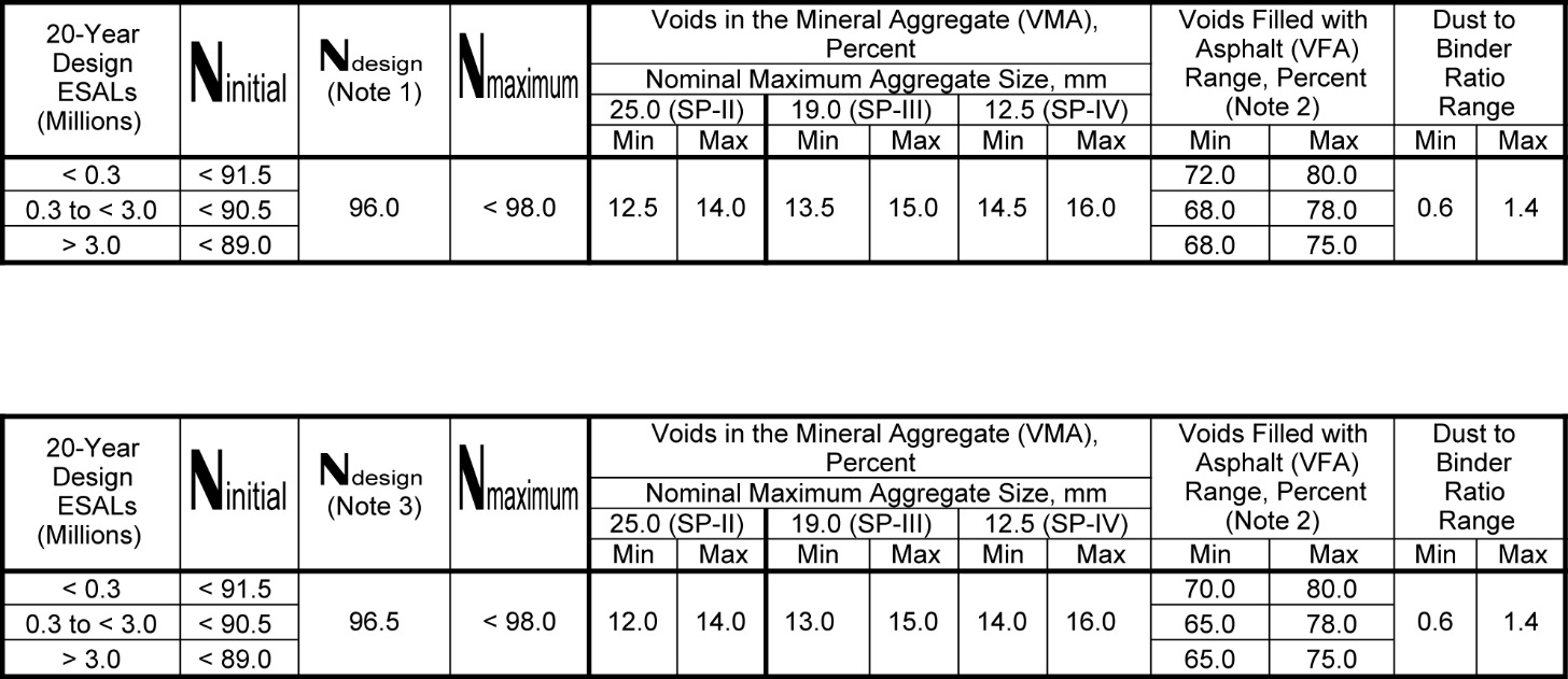 Note 6: All gradation, VMA, and Dust-to-Binder Ratio values shall be determined using the AASHTO T 308 testing results