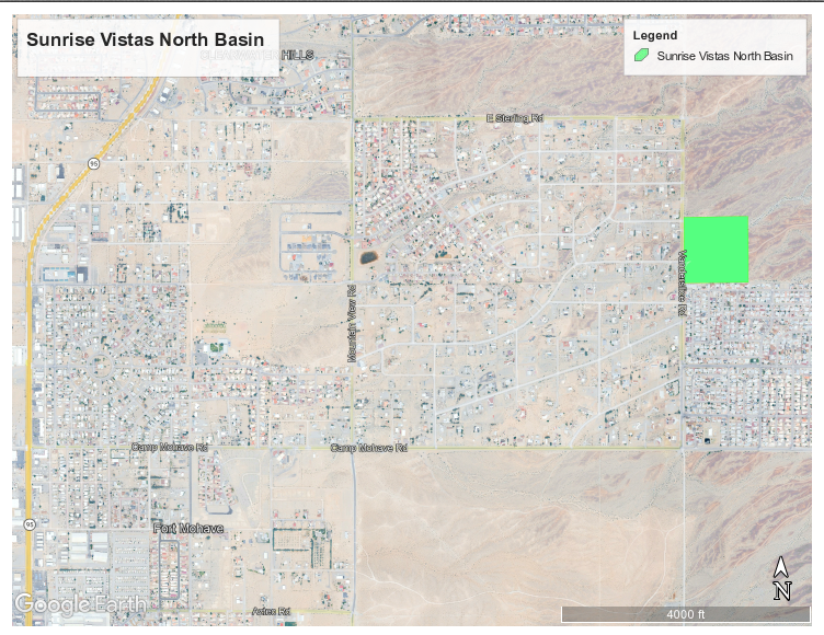 In response, the Mohave County Flood Control District intends to acquire approximately 20–25 acres of Parcel No. 221-36-006 from the Arizona State Land Department (ASLD) for the construction of a regional detention basin. As part of the ASLD land application process, a 30% design will be required to support the land request. In addition to preliminary engineering design, ASLD requires completion of supporting documentation associated with land acquisition, which will be incorporated into the scope of services under this RFQ.